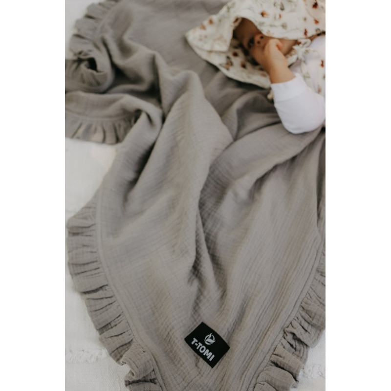 Čo keby ste si namiesto tradičnej deky alebo prikrývky zaobstarali našu mušelínovú deku T-TOMI s volánom? Luxusný mušelín je v súčasnosti veľmi obľúbeným materiálom a niet divu. Vďaka svojim skvelým vlastnostiam je to materiál číslo jeden pre bábätká. Mušelínovú deku T-TOMI s volánom môžete používať nielen v postieľke, ale aj v kočíku, kde zaručene upúta pozornosť na všetkých prechádzkach, alebo doma, napríklad v mojžišovom košu.