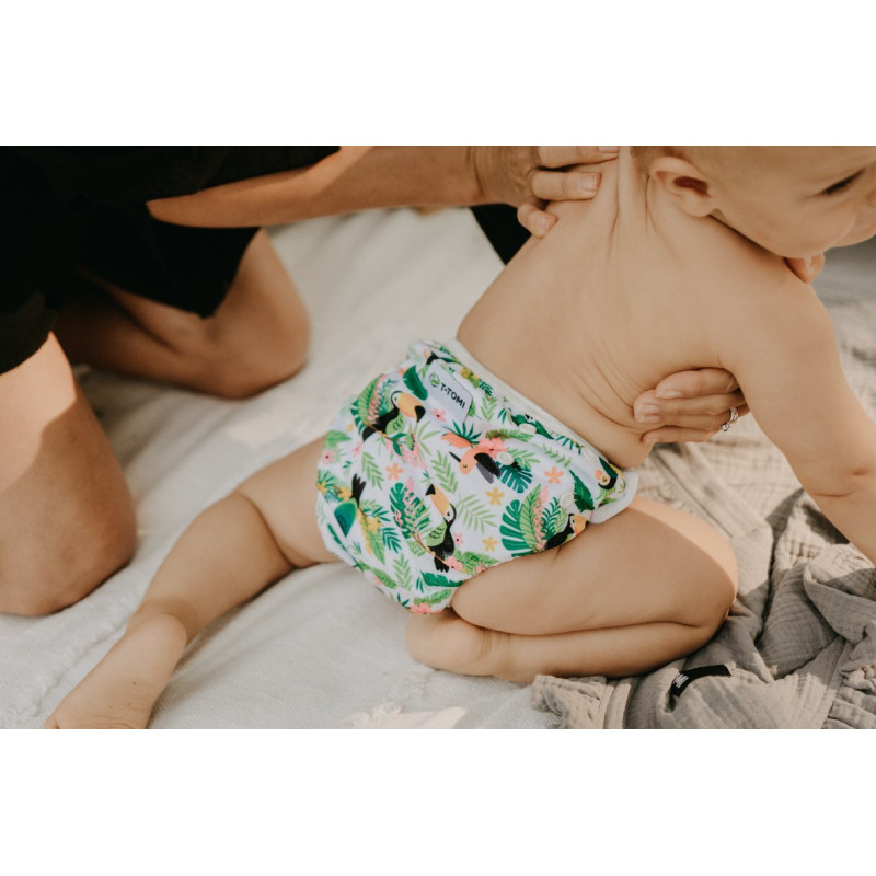 Plienkové plavky T-TOMI v modernom nadčasovom dizajne sú určené pre plávanie bábätiek cca od 5 do 15 kg. Tieto plavky sú vhodné ako pre novorodencov tak aj pre batoľatá a to vďaka jednoduchému systému patentiek, pomocou ktorých sa požadovaná veľkosť ľahko nastavuje. Vnútorná strana plienkových plaviek je vybavená praktickou sieťkou, ktorá zachytí prípadné "nehody" bábätka vo vode. Veľkou výhodou týchto plienkových plaviek T-TOMI je ich ekonomická stránka oproti jednorazovým plienkovým plavkám.