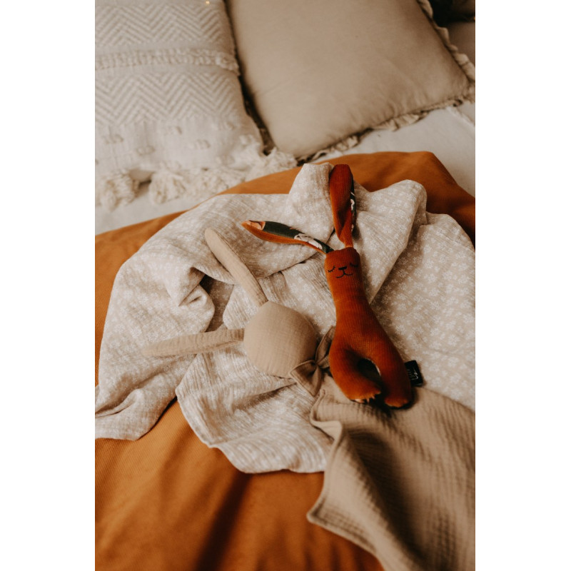 Premýšľate, ako potešiť novopečenú mamičku a jej dieťa niečím originálnym? S produktom Môj prvý zajačik neurobíte chybu. Vďaka svojmu krásnemu dizajnu poslúži nielen ako dekorácia a ľahko ho zladíte s ostatnými výrobkami T-TOMI. Zajačik bol navrhnutý tak, aby ho malé detské rúčky mohli ľahko uchopiť. Môj prvý zajačik je z jednej strany vyrobený zo 100 % bavlny a z druhej strany z príjemného polyesteru (velvetu).